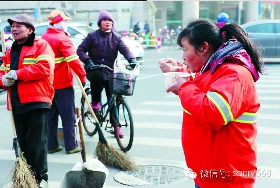 其实各个城市的便利店、超市等等都有微波炉,可以帮环卫工人加热食物,也可以在里面用餐。恳请政府和各位商家在这样的天气里为环卫工人提供取暖场所和热水,不要令这群拿着社会最低工资的人在没日没夜劳作后,还在寒风中吃着冰冷的饭菜。